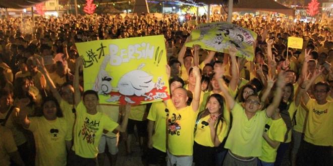 (峇株巴辖27日讯)配合本月29日举办的凈选盟4.0大集会(Bersih),民主行动党帆加兰社区中心发起举办「Pre-Bersih 4.0热身之夜」,昨晚在帆加兰广场举行,吸引超过2000名民眾参与,在峇株掀起一阵黄潮热浪!