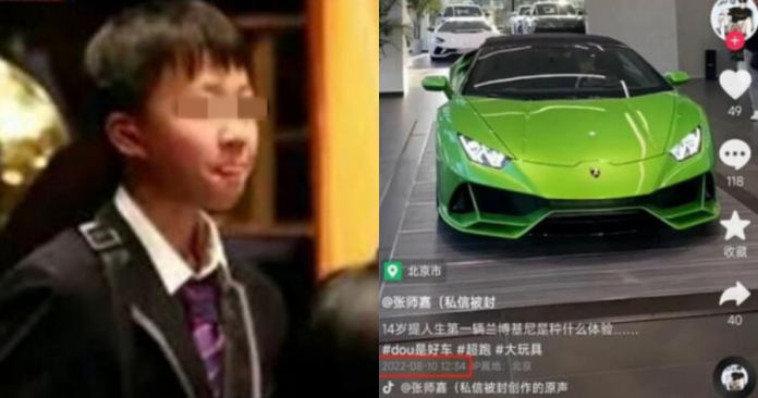 该网名姓张的14岁少年年纪轻轻就喜欢玩车,周三(10日)在抖音帐号发布贴子,写著“14岁提人生第一辆林宝坚尼是甚么体验……”,影片内容则为一辆本年最新款的绿色林宝坚尼HURACÁN,并加上“#超跑”、“#大玩具”等标签。据悉,这辆超跑在北京售价大约为400万元人民币(约263万马币)。