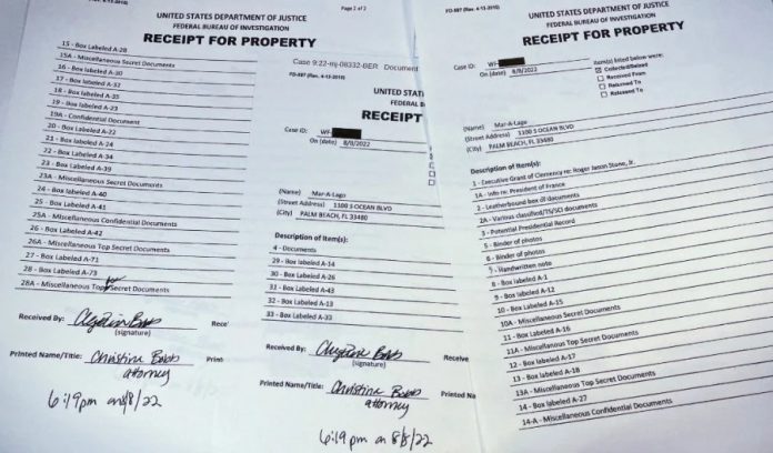 (华盛顿14日讯)美国联邦调查局(FBI)在特朗普海湖庄园家中起获的文件里,据悉有4份是属于极机密(top secret)、3份为机密(secret)及3份密级(confidential);文件主要是按内容敏感性、文件公开后对国家安全的威胁程度来分类。