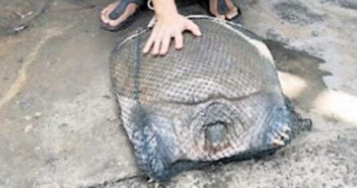 砂拉越北砂 巨鳖险成桌上肴 砂拉越华裔商人购买放生 2022年8月16日 (拉博15日讯)一只43公斤重的巨鳖,险些成为人们桌上的补品!Advertisement 拉博华裔商人罗宏昌动了恻隐之心,今日以1075令吉向意外钓到重达43公斤巨鳖的土著购买后,于今早11时载往拉博河放生。 罗宏昌于在去年疫情期间,也曾购买一只重43公斤巨鳖放生,这次是第3次放生。 罗宏昌表示,这只罕见的鳖大约有40年岁数,因为毕竟这只鳖已在野外生活了许久,让它回归到河中,心情感到非常愉快,大鳖放生引起拉博民众在河岸围观。