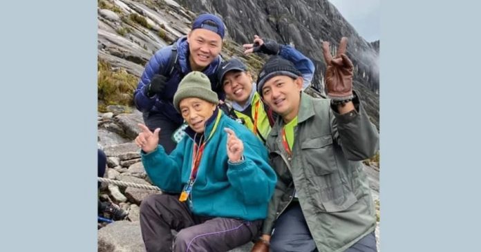 (亚庇6日讯)90岁本地男子不畏风雨, 成功登上海拔逾4000公尺的神山。