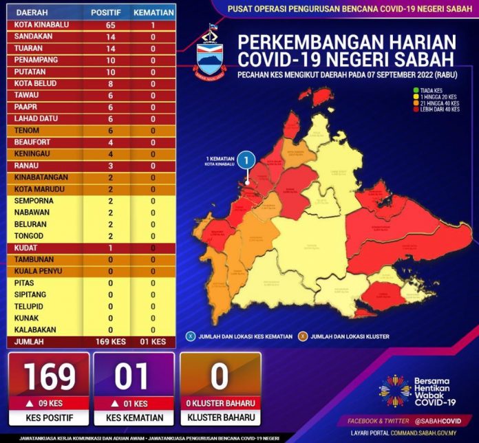 (亚庇7日讯)沙巴今日新增169宗新冠确诊病例,呈阳率为8.70%,全州累积确诊病例达39万1170宗。
