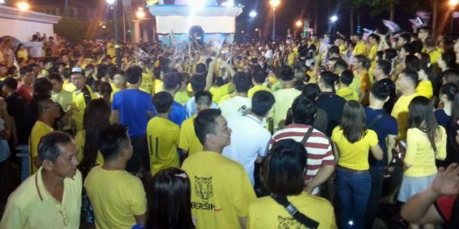 (麻坡30日讯)马哈拉尼广场在国庆前夕,超过千人出席由峇吉里及文打烟社区中心在网络上號召的穿黄衣倒数迎国庆的集会,令麻河畔顿时涌现黄潮。