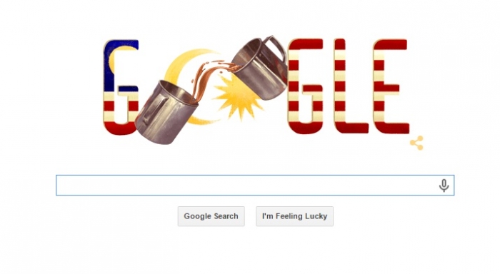 今天打开谷歌大马页面,出现了「辉煌条纹」(Jalur Gemilang)及拉茶(Teh Tarik)图案,其中谷歌(Google)中的两个「0」字母以两杯拉茶替代,背景则以星月作为衬托,其余字母以「辉煌条纹」呈现。
