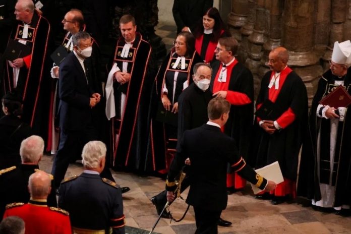 网络上传的视频显示,王岐山一行在周一与各国政要陆续进入西敏寺,参加在那里为女王举行的国葬。从视频和照片看,在各国政要中,唯独王岐山和随行带着白口罩,显得与环境格格不入。