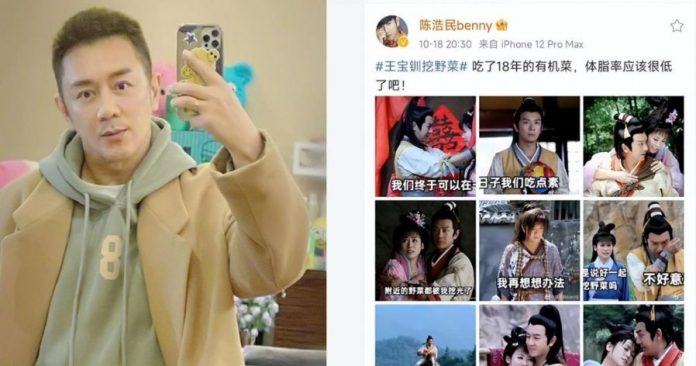 该剧重新在网上引起讨论之后,陈浩民日前也在微博发文,转发了几张网民用《薛平贵与王宝钏》截图做的梗图,还开玩笑配文说:“吃了18年的有机菜,体脂率应该很低了吧。”这些图中,有的是王宝钏说“附近的野菜都被我挖完了”、“不是说好一起挖野菜吗”,有的则是薛平贵说“你累,我在西凉多找一个姐妹帮你挖野菜”。