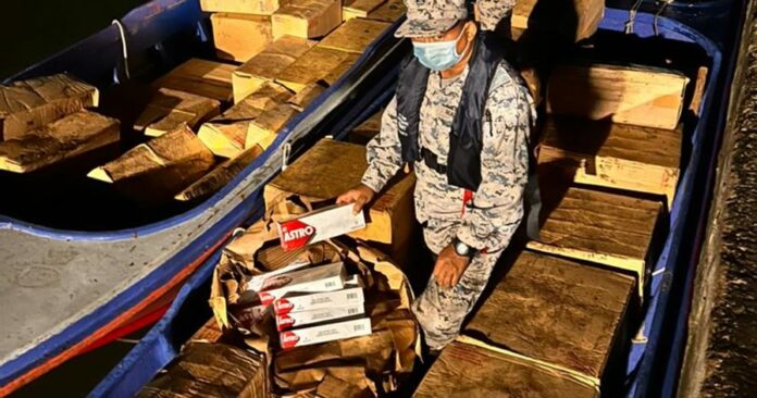 (斗湖25日讯)马来西亚海事执法机构斗湖执法组成功阻断走私集团走私大批香烟,卤4560条价值15万6千令吉香烟,行动也扣2艘船,2台船机及1辆3吨罗厘。