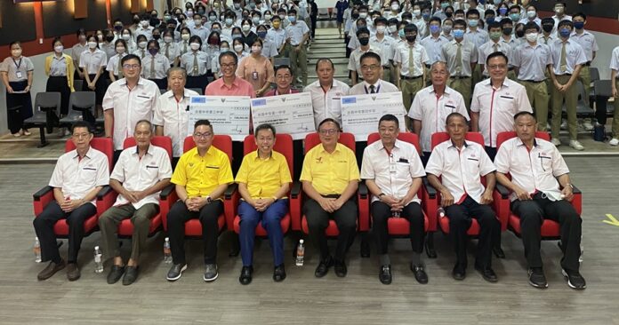 他感谢砂副总理拿督斯裡沈桂贤今日代表砂拉越政府移交总数 225万6304令吉的拨款给该会属下三间中学,分别是一中 90万4635令吉;三中 72万8492令吉以及四中 62万3177令吉。