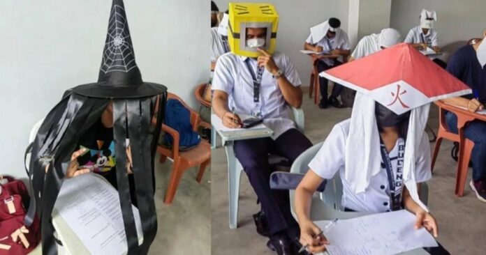 最近菲律宾的社群媒体上疯传数张“防作弊帽”的照片,一名大学教授在10月期中考试期间,为了防止学生们东张西望,要求他们戴上“防作弊帽”;许多学生发挥创意,用纸板、鸡蛋盒、回收材料等等来自制帽子,照片也在网路上爆红,掀起热议。