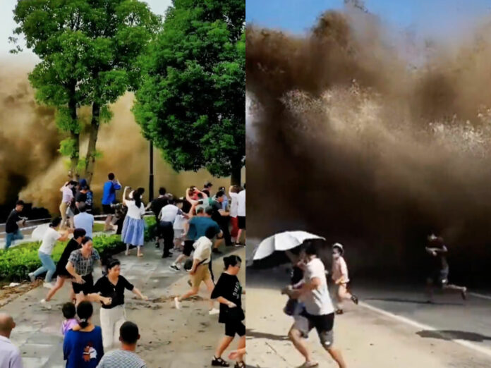 不过,钱塘江大潮其实潜藏巨大安全隐患。2021年,杭州一名男子为拍摄「鬼王潮」壮观景象而站在堤岸边,接着一阵大潮过来后,他重心不稳直接翻落钱塘江内。