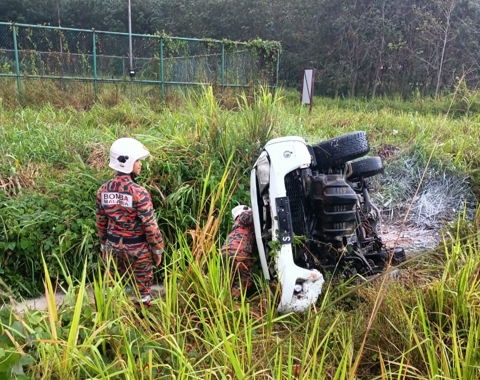 亚庇31日讯|吧巴旧路达曼拿加巴斯今午发生四驱车翻车意外,司机命大吉人天相。