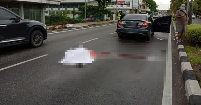 (诗巫2日讯)一名流浪汉在越过马路时,遭私家车意外撞倒,不幸丧命。
