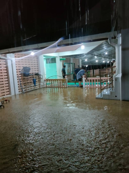 第二天早上,丹南区国会看守议员诺丽达的服务团队立刻前往清真寺巡视,了解发生闪电水灾造成的影响。