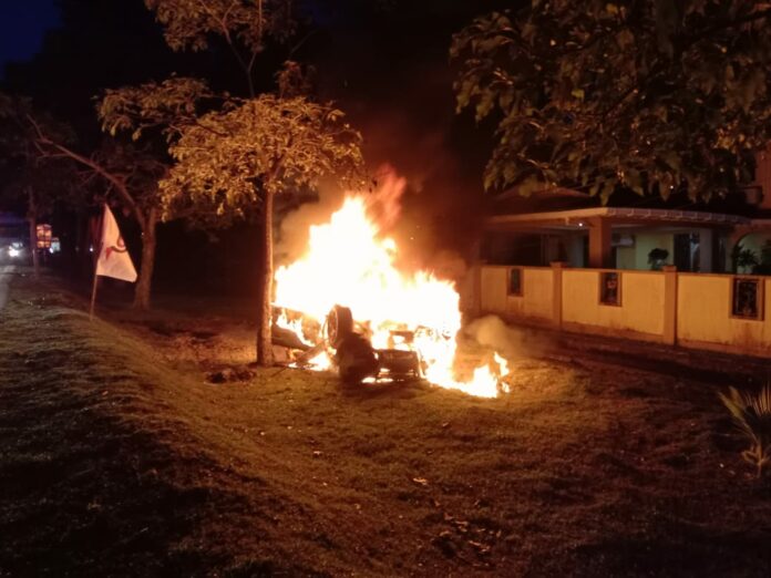 祸不单行的是,车子在车祸后着火焚烧,所幸的是途经现场的公众施出援手,援助肇祸司机脱困。