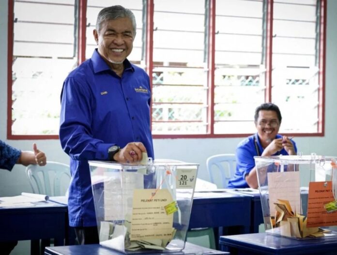 全国大选西马 扎希:情报显示国阵能组新政府 2022年11月19日 (吉隆坡19日讯)巫统主席阿末扎希今早8时44分,在宗教学校madrasah manbail ulum完成投票。Advertisement 他接受媒体访问时表示,根据国阵接获的情报显示,国阵可以组成新政府。 “我们希望选民支持国阵,以便维持政治稳定。”