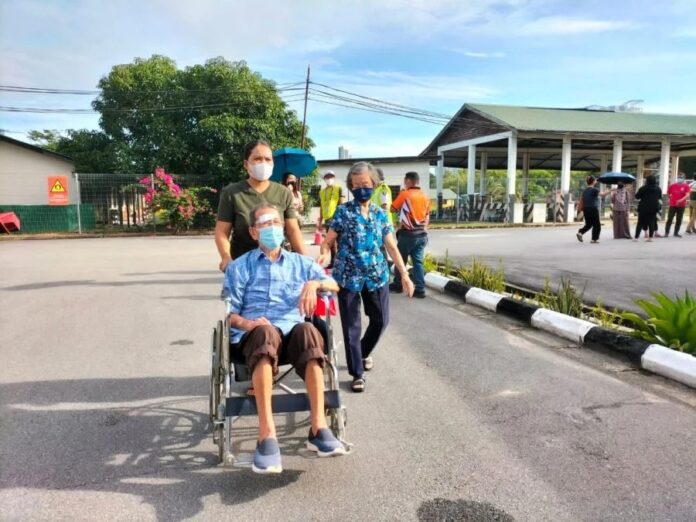 (槟城19日讯)84岁的郭孝信早前因跌倒头破缝针,其妻子郑莲银(84岁)就告诉他今天不必出来投票,但是他却坚持要出来投票,并表示,“一票都不能少”!