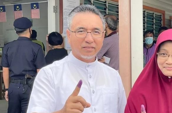 阿德里是于今早约9时03分抵达榴梿洞葛国小投票中心,并与夫人达丽拉在3号渠道投下手中一票。