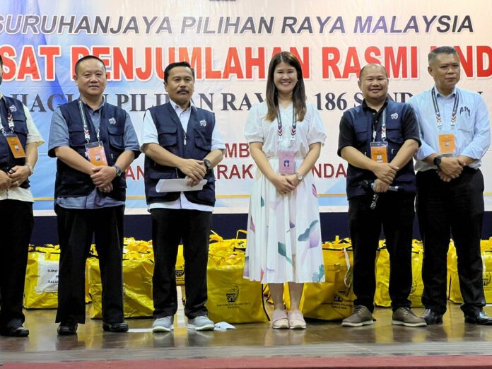 山打根国会选区选举官达曼沙是于今晚11点,在充作山打根国会选区总计票中心的山打根市区民众大会堂内,公布山打根国席选举成绩,宣布黄诗怡胜选。