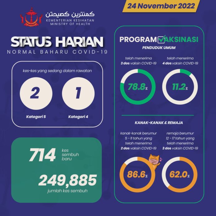 截至11月24日,汶莱全国5岁到11岁之间孩童第2剂新冠疫苗接种覆盖率为86.6%;12岁到17岁之间孩童第3剂新冠疫苗接种覆盖率62%。