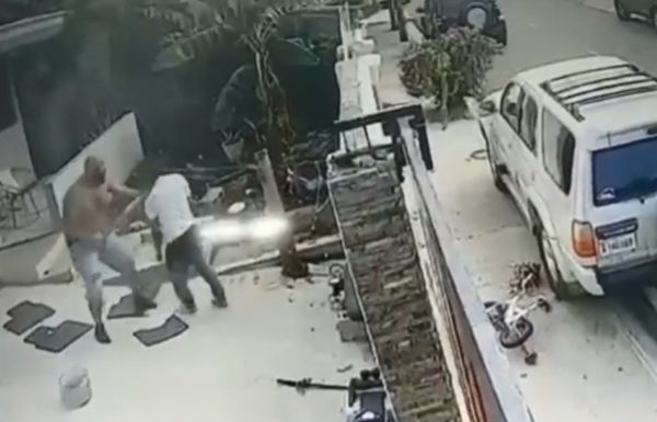 根据当地媒体《Color Vision Canal 9》报导,该名窃贼先将脚踏车往墙外扔,再爬上围墙要离开,结果屋主逮个正着,拿了木棍就冲上前阻止窃贼逃跑。