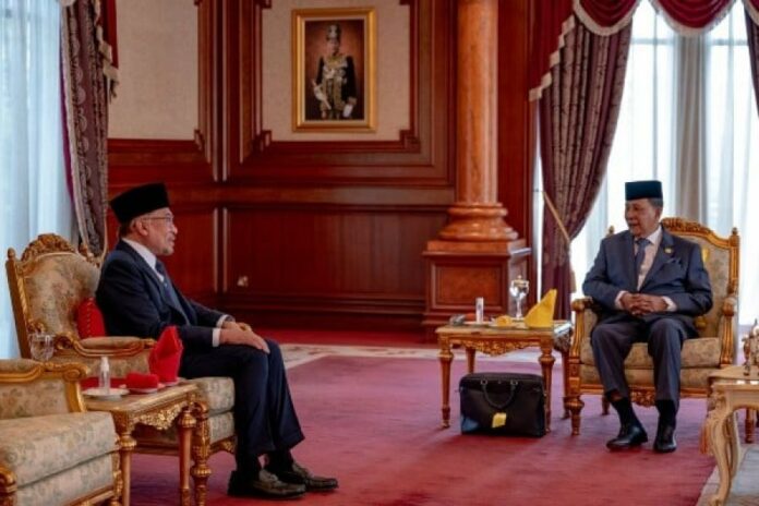 安华是今日下午在面子书发贴文,并附上一张照和吉打苏丹在达鲁安曼王宫会面进行交流的照片。