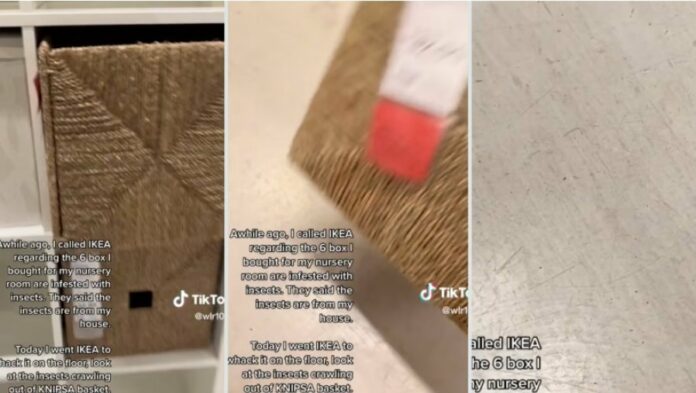 这名网民在视频中说:“我之前在(新加坡)宜家买了6个储物篮后发现里面有虫子,我向宜家投诉,但对方却说虫子是在我家出现的,于是今天我到宜家甩一下储物篮,看看这些从篮子里掉出来的虫子。你们试试看吧。”