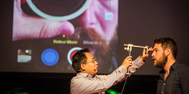 (古晋13日讯)古晋一名华裔眼科医生方圣权,发明全球第一部通过智能手机搭配而成的手提式验眼器,入围纽西兰「发明奖」。