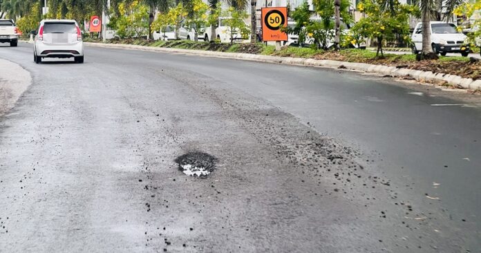 (民都鲁3日讯)苏丹伊斯甘达路还没完成施工,就已出现坑洞。