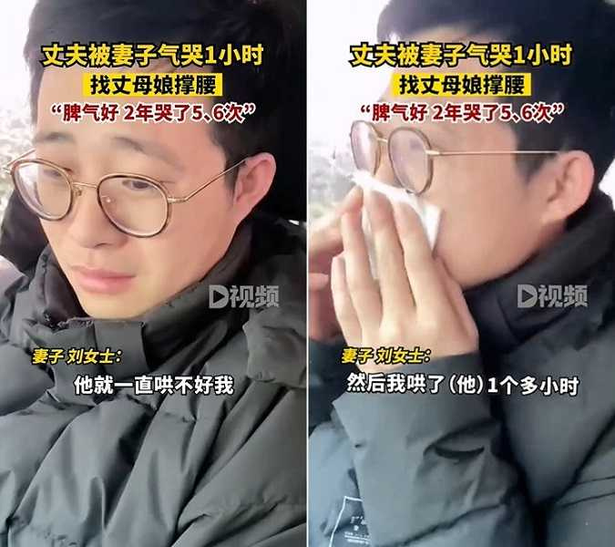 结果角色对调,反变成刘女在哄丈夫,哄了1个多小时,对方却还是在哭,“然后我就被我妈骂了”,丈夫见状瞬间不哭了,拾起笑脸开心地去做饭,让她哭笑不得,认为丈夫一定是故意的。