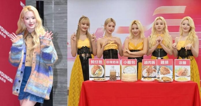 根据台湾中央社报导,记者会上为让(G)I-DLE体验夜市小游戏,现场准备了弹珠台让成员小娟、Minnie、薇娟、舒华、雨琦体验,选项包含鸡排、凉面、蚵仔煎、珍珠奶茶、小笼包及卤肉饭。