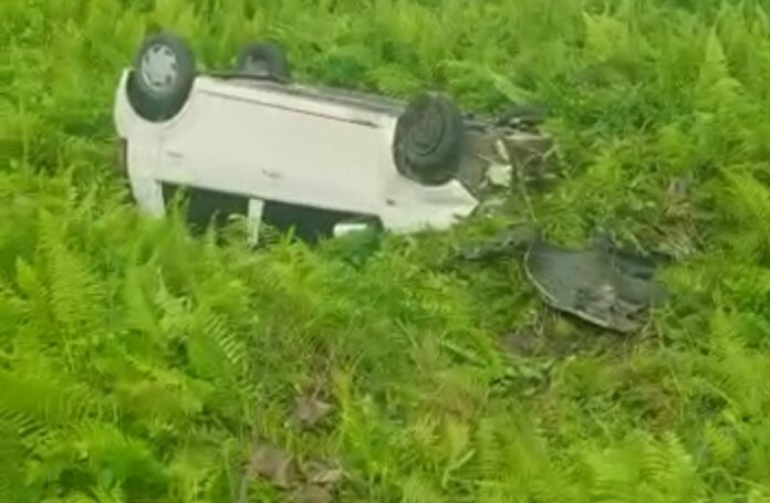 今早近8时,上述路段发生车祸,1辆威华在打滑失控冲撞向路边草地后,猛撼路堤后翻覆草丛。