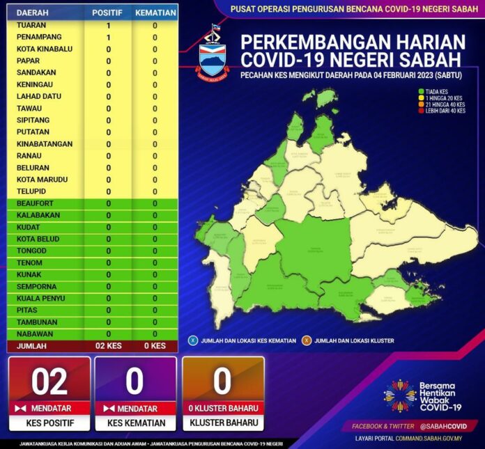 (亚庇4日讯)沙巴今日新冠新确诊病例和昨日一样只有2宗,目前累计病例已经达40万6,822宗。
