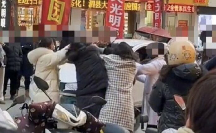 综合中媒报导,事情于情人节前夕的周一(13日),发生在安徽宿州泗县中城街附近,一名已婚妇女带著女儿在大马路上围堵搞外遇的丈夫,当时丈夫与小三亲密走在一起。