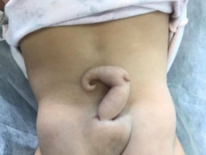 医生表示,该附肢是“人类的假尾巴”,虽有尾巴的外型,但实际上是因为脊椎问题或肿瘤所引起。