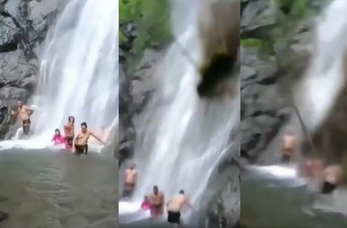 综合外电报导,事件发生于本月14日下午3时30分,当时同事一行人在瀑布底下冲凉聊天,其中1人则是站在较远处录下画面。一切原本相当平静,下秒土石流突然冲刷下来,5人全被击中。