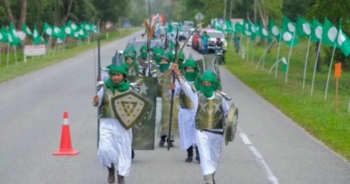 伊党署理主席端依布拉欣宣称这场游行类似中国京剧,即演员也会带著刀枪。但京剧并非随时在街上进行表演,反之是在特定的场合里,且配合完整的剧本和角色,并不只是舞动刀枪罢了。