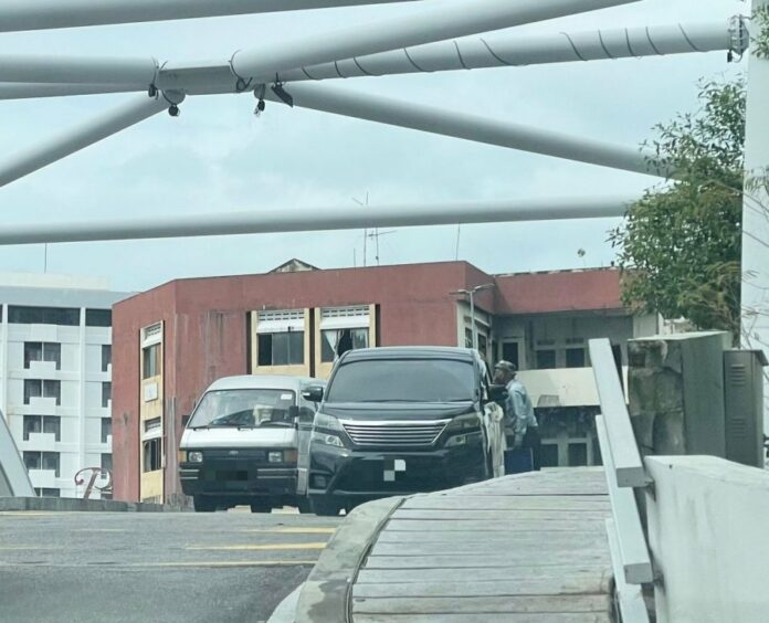 哥打叻沙玛纳州议员刘志俍与助理李祥生于昨日早上约11时,开车路经拿督莫哈末晋桥,往烁.购物廊方向(The Shore)时,被该名戴帽子的华裔老翁截停乞讨。