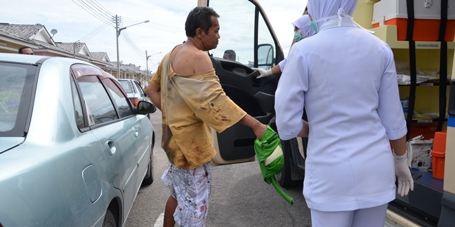 砂拉越北砂 劳动巡警上门调解 2男互殴1人满身伤 2015年1月14日 男伤者遍体鳞伤,经医务人员包扎后,已无大碍。 (本报美里13日讯)两名友人彼此之间有误解,因此引起殴打事件,结果其中一人遍体鳞伤,惊动两户家人出动调解不果,越闹越凶,最终巡警到场劝解。Advertisement 上述殴打事件是今早约11时,于柏迈再也一间住家发生。 据知,两名华裔男子因私事而起摩擦,结果今早就在其中一人住家前发生殴打,导致弱者遍体鳞伤。 事后,2男依然心有不满,继续在口角方面发生激烈争执,导致双方家人都无可奈何。 最后,巡警给他们警告后才停息暂时的风波,后来医务人员到场为伤者包扎伤口。