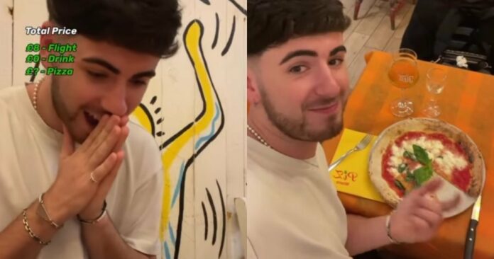 不久后,卡勒姆竟真的飞往米兰,并向网民询问当地好吃的披萨店,接著他走进一间大家推荐的店家,点了一份不到10英镑(约54令吉)的玛格丽特披萨。
