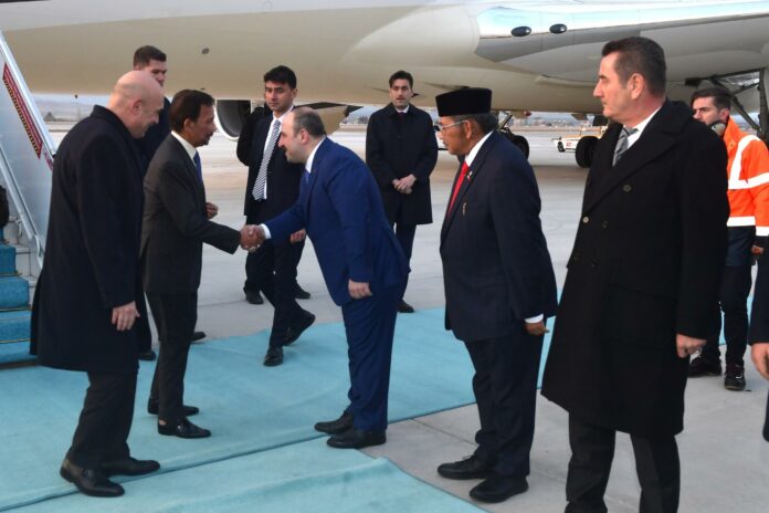 汶莱苏丹陛下于昨日抵达埃森博加机场时,受到土耳其工业和科技部长Mustafa Varank的欢迎。