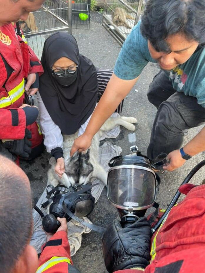 (斗湖8日讯)阿拔士路宠物店失火,16宠物受困,幸运全被消防队救出。
