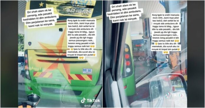 他说,转入油站时,他发现有一辆巴士停放在2个预留给轻型车辆添油的车位中,由于紧急情况,而且也等了许久,于是阿兹曼伊就走过去跟巴士司机提出要求,希望对方能将巴士挪开一下,让出一条车位好给救护车添油。岂料那位司机不但拒绝,而且还用极其恶劣的口吻回呛表示,那是你们的问题,不是他的问题。