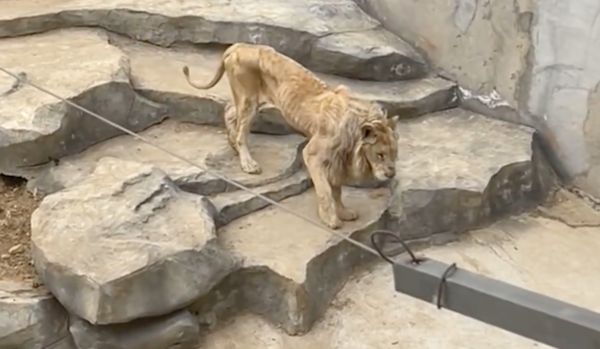 江苏南京金牛湖动物园一头雄狮近期被游客拍下已经瘦的「不成狮形」,不仅明显可见肋骨突出,走路的样子也摇晃蹒跚,让游客看了相当不舍,怀疑园方有虐待动物之嫌。是建在网路上发酵后,园方紧急对外说明称,该头狮子是年纪过大,咬合出现问题,已经进行治疗和体检,「不能长期待在室内,需要出来透透气。」