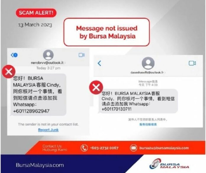 该公司提醒公众,在遇上自称是交易所代表、职员或代理等时,需保持警惕,并可透过电邮bursa2u@bursamalaysia.com或致电03-27320067向公司查询。