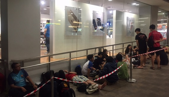 (新加坡25日讯)新加坡烟霾情况严重,陷入「雾锁南洋」情况,虽烟霾来袭但难阻新国的「苹果迷」彻夜排队,只为了抢先购得週五早上新鲜上市的苹果(Apple)iPhone 6s或6s Plus手机。