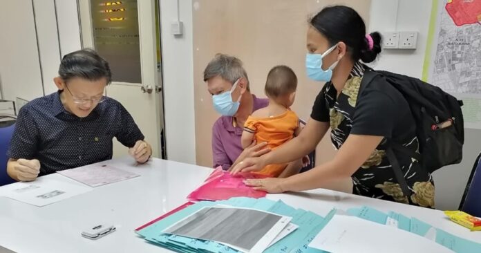 江仁贵(61岁)偕同妻子美莉玛拉于今日携带小儿子,专程到人联党峇都林当支部面谢该支部主席薛华东致力协助,使到他俩的大女儿在日前获得当局发出报生纸。