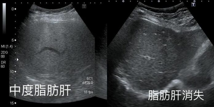 钱政弘在脸书上分享,他日前替这名阿姨做超音波检查,发现去年的中度脂肪肝已消失,这次的检查结果完全正常,开口询问以后,才知道阿姨在一年内瘦了快10公斤。