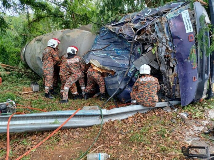 “爱极乐消拯局出动12名消拯员到场,在抵达现场时,我们发现一辆洋灰罗里翻覆在路边,而有一名男子夹困在司机座位中。”