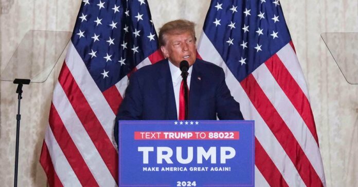 综合外电报导,特朗普在海湖庄园交谊厅发表谈话,「我唯一犯下的罪,就是勇敢捍卫我们国家不被那些想要摧毁的人破坏。」