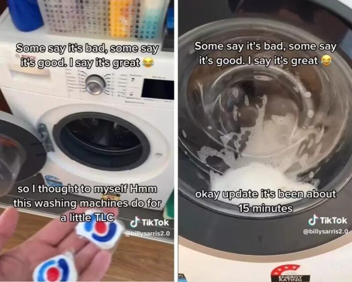 据每日邮报(Daily Mail)报导,萨里斯(Billy Sarris)某次洗完床单后,觉得洗衣机散发一股怪味,于是决定清洗洗衣机。他将洗碗机用的清洁片放进洗衣机里,并且将洗衣温度设定到最高,开始清洗洗衣机。